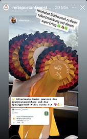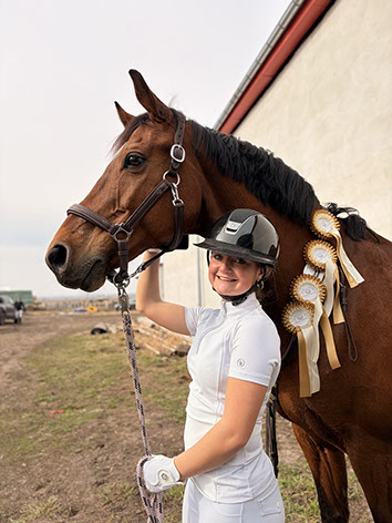 Theresa Albrecht startet mit 4 Pferden in Jungpferdeprüfungen und mit ihrer selbst ausgebildeten Stute "Conni" - ein tolles Wochenende- bei 29 Starts an 3 Tagen gab es 23 Paltzierungen inclusive 3 Siegen!