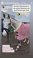 Lara Frankenstein und "Nairobi Sunshine" konnten strahelen! Auf einem Hallenturnier in Polen starteten die Beiden 4x in Prüfungen der Klasse A Springen und freuten sich über 4 fehlerfreie Ritte, die mit einer goldenen Schleife belohnt wurden. Ein toller Start in die neue Saison.