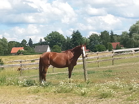 Seit 2013 gehört er Frau Bettin, steht weiterhin bei uns auf der Reitanlage und darf sich seinen Streicheleinheiten sicher sein. Filou ist 2016 nun 12 Jahre alt.