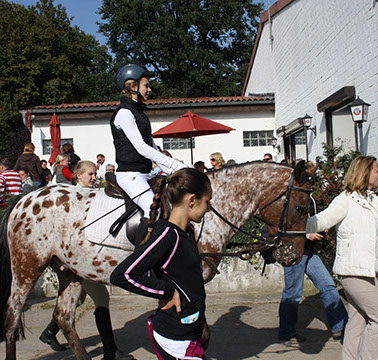 Filou kam als 3jähriger Hengst zu uns auf die Reitanlage und hatte während seiner Zeit als Schulpferd sehr viele Fans. Er war ein super Lehrpferd, brav im Gelände und ein Verlaßpferd bei kleinen Turnierstarts - ebenso sprang er für sein Leben gerne.