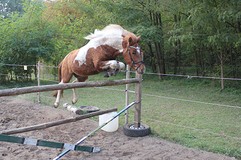 "Cavallino" kam als 4-jähriger in den Schulbetrieb und eroberte schnell die Herzen von den Kindern für Dressur und Springen. So dauert es auch nicht lange, bis er in den Besitz von Herrn Schmalor und Frau Hitschold kam, die mit dem quirligen Pony junge, ambitionierte Reiter fördern. Cavallino ist ein zuverlässiger Partner für erste Starts auf Turnieren in Wettbewerben bis zur Klasse E für Dressur und Springen geworden und erobert seit 2 Jahren die Herzen im alljährlichen "Jump and Run" auf dem Hausturnier, welches er in Folge gegen viele Pferde gewinnen konnte.